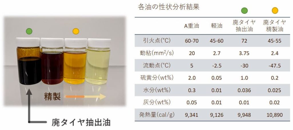 廃タイヤから油脂分を抽出・精製して重油化しボイラーなどの代替燃料として利用することにより、自社の石油購入代金が約30%節約できます。